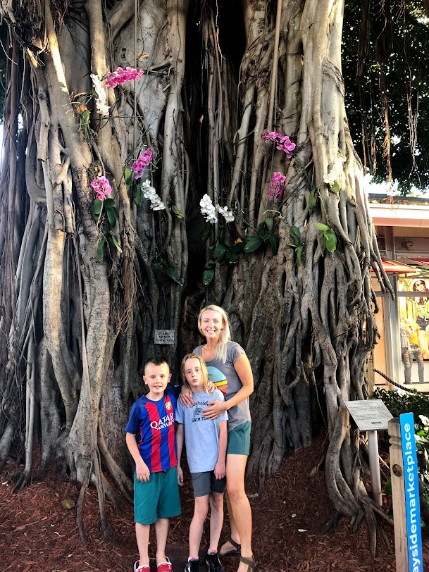 I was in love with the beautiful banyan tree that was over 200 years old. This one came all the way from India! Brielle was not in the mood to smile for this picture.