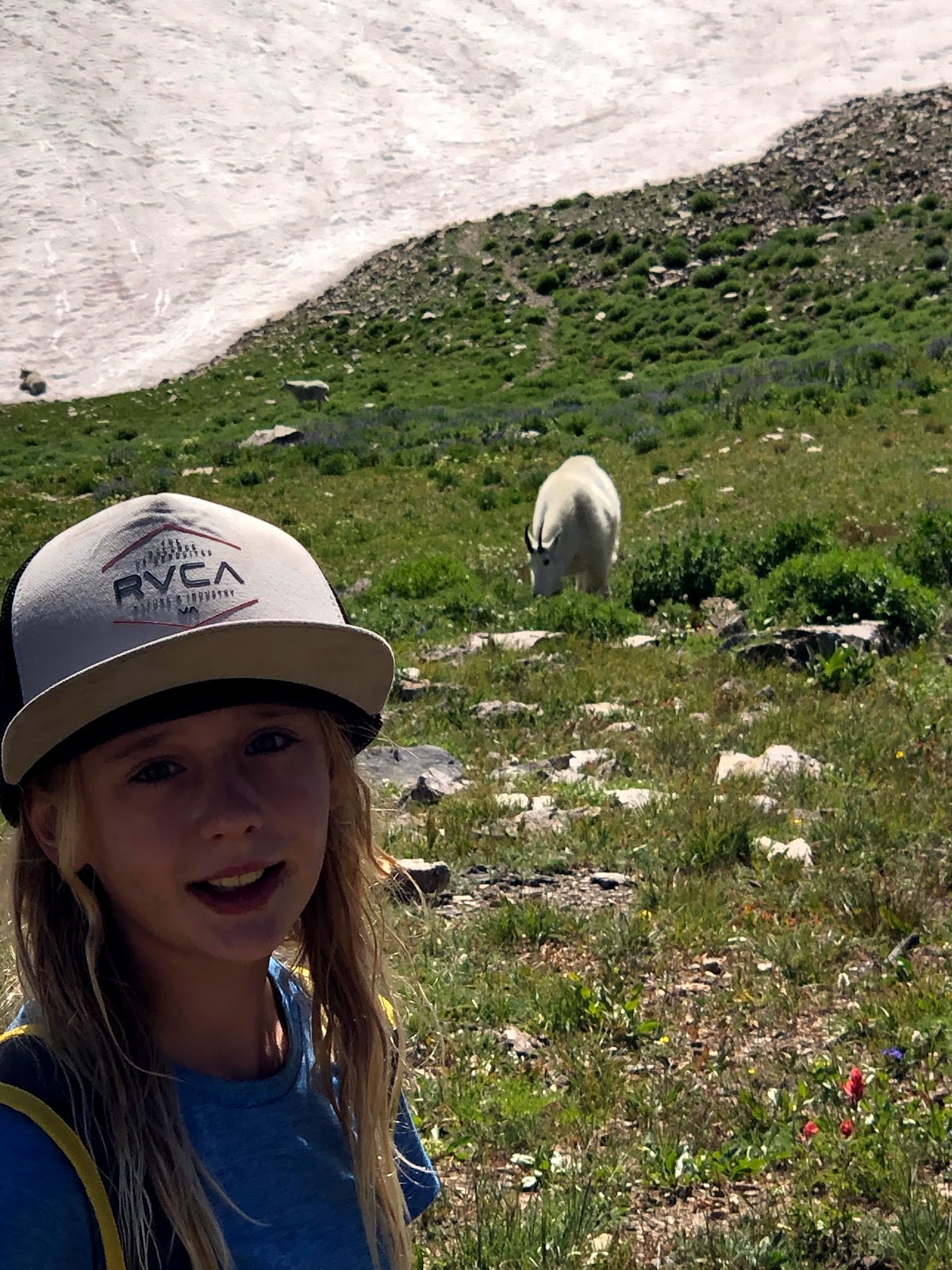 Our first encounter with the Mountain Goats was by emerald lake and the glacier. We stopped at took a quick pick on our way up. It was getting later and I tried to turn Brielle around here and go back down, but she was determined to summit no matter what!